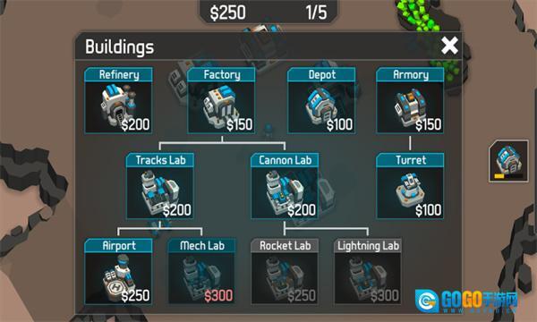 选择界面右下角是建筑板块,玩家能够在此处购买想要建造的各类建筑。