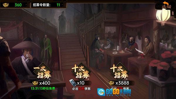 游戏开局后不久,会有一次十连招募侠客的机会。这次十连招募必定能获得红色武侠,前期可以着重培养这个红色武侠,它伤害充足,能帮助你快速打通天塔、推进主线。建议优先培养资质为2.2的红色武侠,这类武侠在每次十连招募中基本都会出现一个。