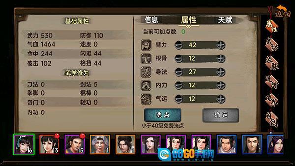 个人建议输出型武侠加点选择2臂力1身法;前排(肉盾)则推荐2内力1气运。根骨属性主要提升血量,但实际上学习武学内功带来的血量增幅,会比单纯加根骨要多得多。