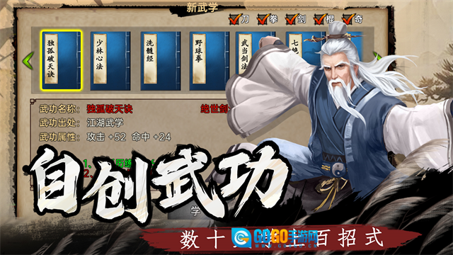 功法自由:江湖中再现琳琅满目的神功绝学,任你自由研习、随心搭配,施展起来信手拈来,招式流转行云流水。