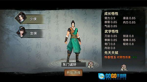 游戏里没有特定的职业可供挑选,男性和女性角色都只有一个固定模型,不过二者在成长悟性与武学悟性方面存在不同。大家可以按照自己的喜好来决定选择哪个性别。