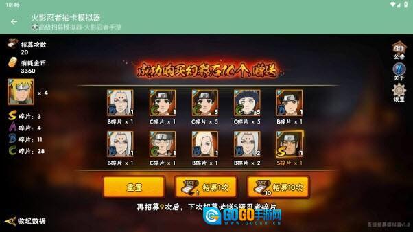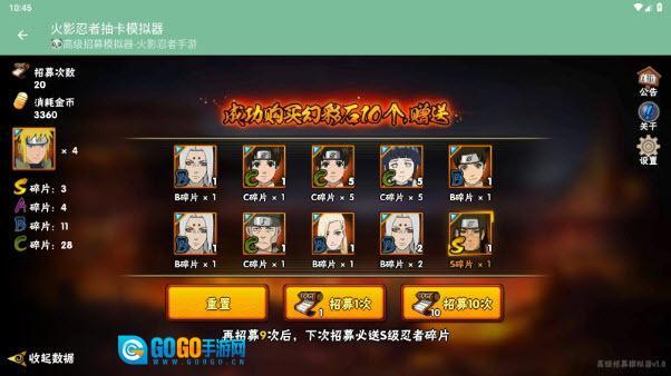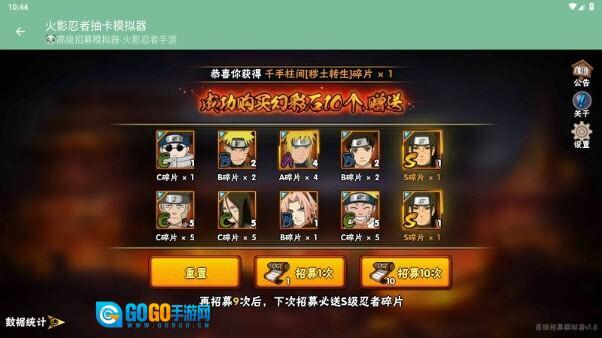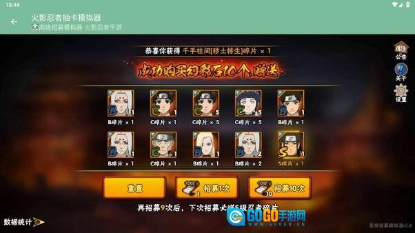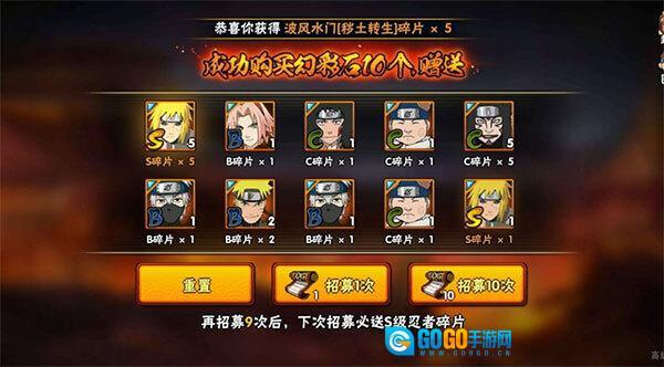 要是对招募结果不太满意,我们可以接着进行10连招募,一直到抽到我们想要的忍者碎片为止。