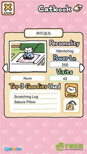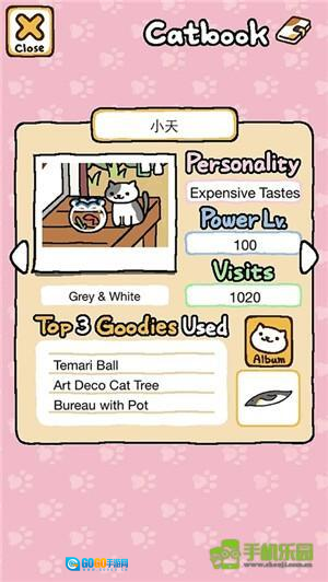 接下来要介绍的是personality、power和visits这几个方面。Personality指的就是对猫咪性格的描述,通过了解这一点,能帮你给猫咪挑选一个更贴合它的名字。Power对应的是猫咪的活力值,活力值越高的猫咪,越容易抢到自己最爱的玩具,而活力值比它低的猫咪,就只能去玩其他玩具了。Visits表示的是猫咪的造访次数,通常来说,当造访次数达到50次左右时,猫咪可能会给你带来小礼物,但这也不是绝对的情况。