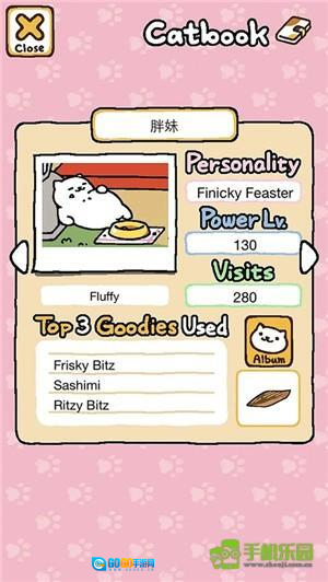 c、贪吃猫:胖妹。它总是会把猫粮吃个精光,虽说场景里已有的猫咪不会被它立刻赶走,但要是没了猫粮,就没法吸引新的猫咪过来。要是你太心急,在胖妹刚吃完还在休息的时候就把猫粮添满,那会立刻把它赶走。赶走正在玩耍的猫咪可不是什么好事情。