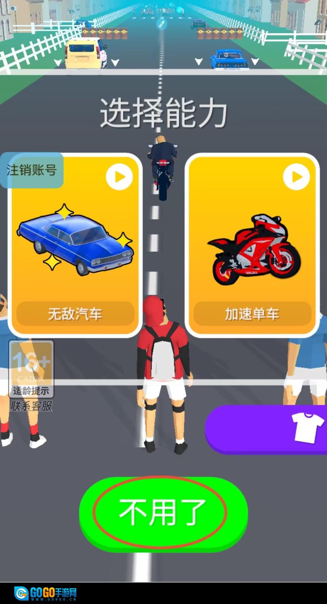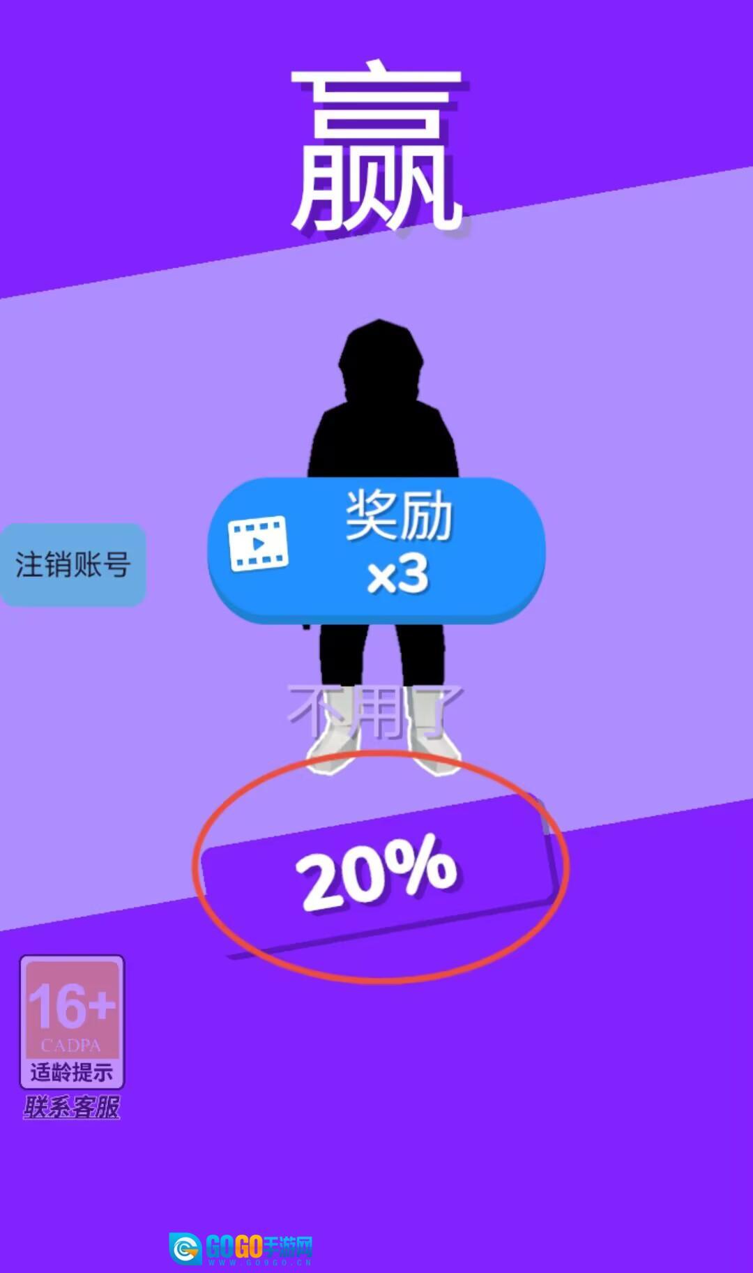 一直向前推进到终点线,同时避开各种障碍物,通过关卡后会显示胜利界面以及角色解锁进度的统计信息。