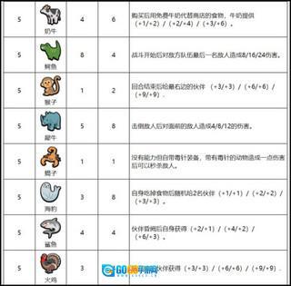 Goat/山羊(4/6):购买宠物时可获得1/2/3枚金币