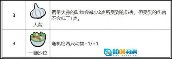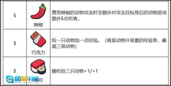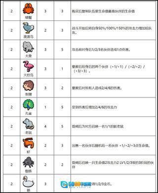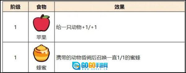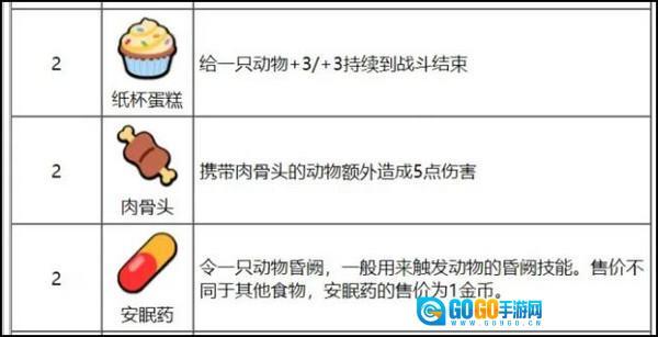 Squirrel/松鼠(2/5):在每个回合开始时,会让第一波商店食物的价格降低1/2/3金币。