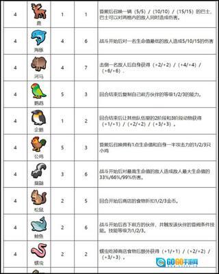 Tiger Cub/小老虎(4/3):当有1个前方队友处于战斗状态时,该队友会释放2次能力(其中第二次能力的效果根据老虎的等级来施放)