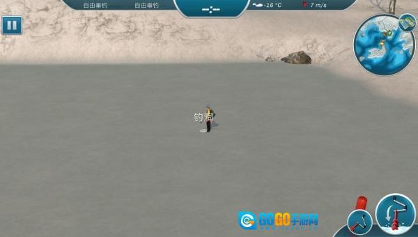 钻好钓洞后,游戏会切换到钓鱼视图,玩家可在此进行垂钓操作。