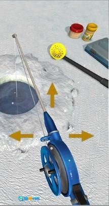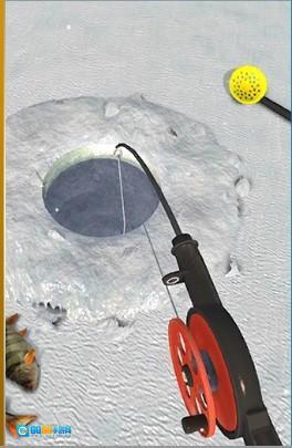 最后,可以使用钓洞旁边的撇渣器撇掉洞中的浮冰。