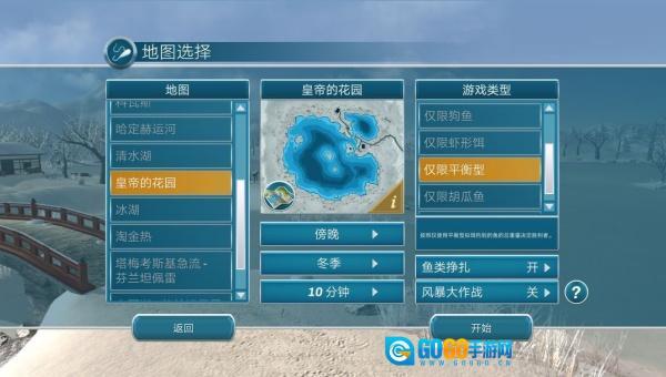 先攒够2000金币买重型鱼竿,接着去皇帝的花园钓狗鱼和鲑鱼;游戏类型只选平衡型,其他设置和之前一样,尽量挑深水区域钓大鱼。这个地图通常10分钟就能稳拿第一,能赚800,就算运气差点也能拿第二,有550进账。你会看到电脑钓了不少鱼,但重量都不高——所以别比拼数量,锦标赛其实挺坑的,耗时久还收入不稳定,建议等成老手了再去尝试。