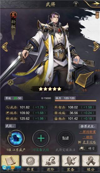 副将孙尚香可降低敌方防御并为孙权增加守御效果;副将孙策携带八门技能能提升孙权的攻击速度。