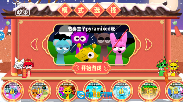 1、点击开始游戏按钮,进入节奏盒子pyramixed版本的游戏,开启趣味十足的节奏挑战之旅。