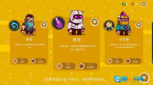 收集地图的每个部分,可以解锁特别角色。