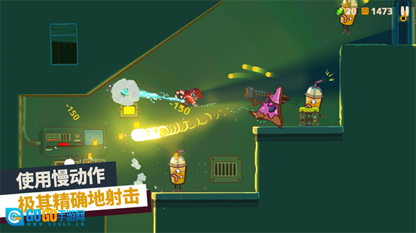 1、快节奏的横版快速射击模式,动作表现流畅利落,操作门槛极低