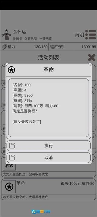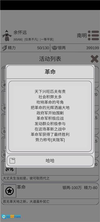看到有玩家说革命值一直卡在0,我特意开了一局试试。六十多岁时终于成功触发革命,不过因为没留意大明的稳定度,结果不小心让它分裂成了南明,平白多耗了些时间。