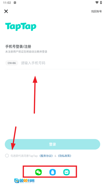 3、您可以通过输入手机号登录,也能选择微信、QQ或邮箱进行登录,登录前请记得点击同意用户协议和隐私政策。