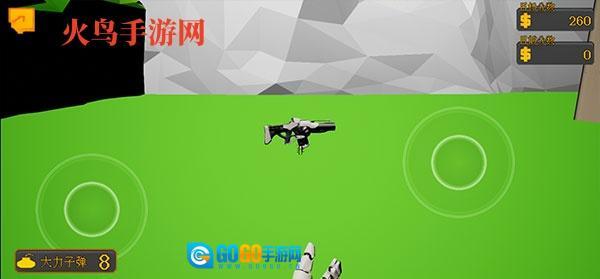 2、进入第一关(即教程关卡),左下角的子弹没有数量限制,左侧按钮用于控制移动,右侧按钮则负责调整视角。