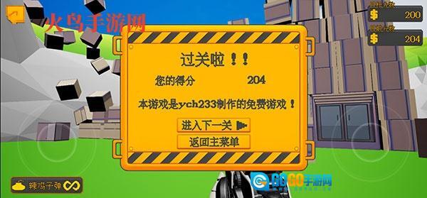 5、就能快速炸掉整栋楼,用越少的子弹就能拿到越高的分数,右上角会显示当前的分数和可获得的金币;