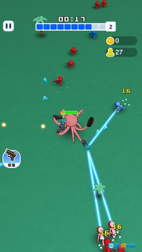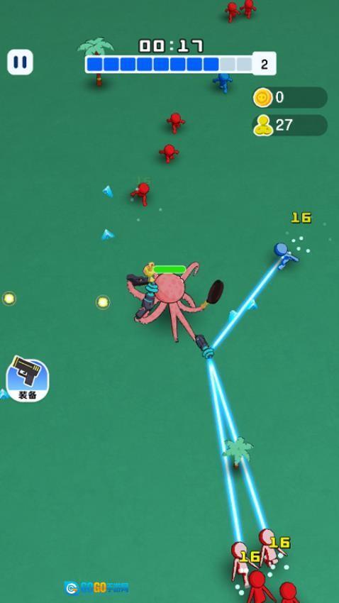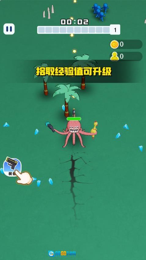 1、这是一款充满刺激感的动作冒险游戏。玩家将操控趣味十足的章鱼角色投身战斗,在各个关卡场景里,得灵活调整走位,及时拾取经验来实现快速升级,进而解锁更强大的战斗能力。