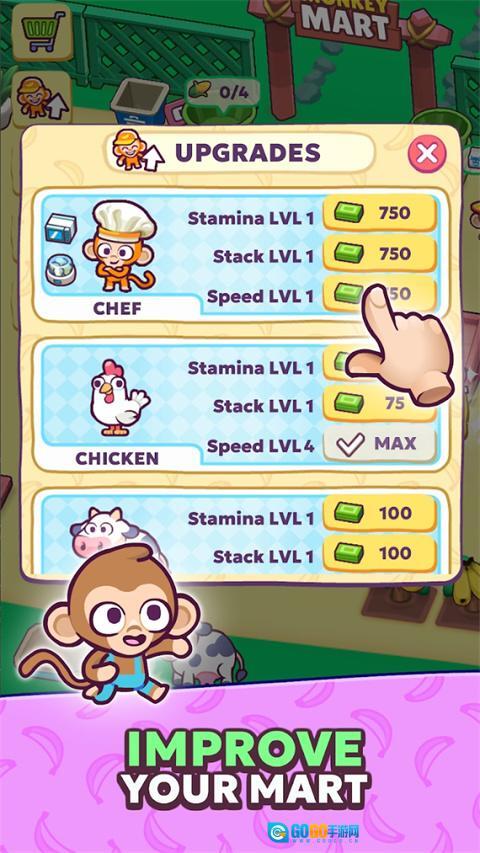 4、玩家获得的钞票,既可以用于升级猴子的属性,也能够解锁新的猴子。