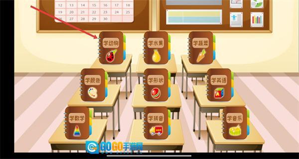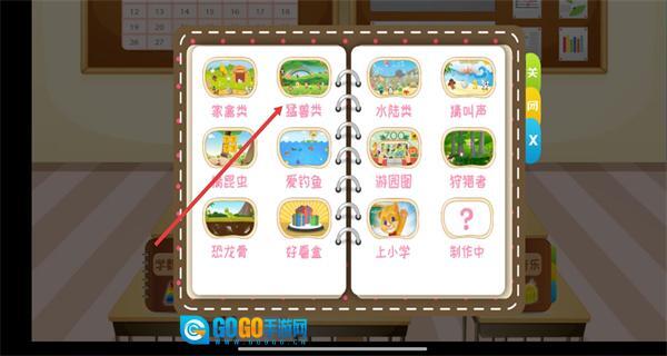 2、进入教室场景后,点击“学动物笔记本”,即可进入动物学习分类页面进行查看。