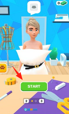 1、玩法机制:玩家将扮演服装设计师,点击“START”按钮为顾客进行量体,接着挑选服装款式(例如连衣裙)、图案与颜色,随后使用缝纫机缝制衣物,最终完成订单交付。
