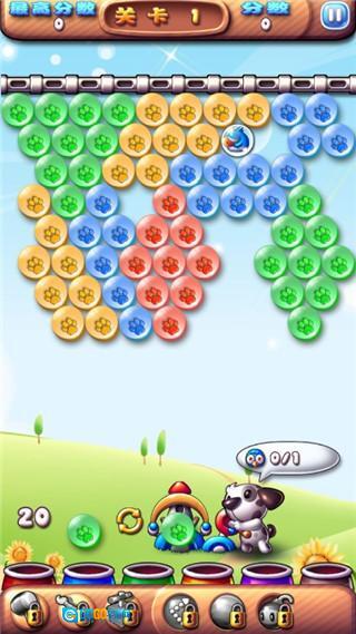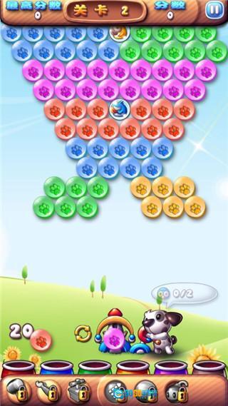 含有经典的泡泡游戏玩法以及萌宠小狗狗结合在一起