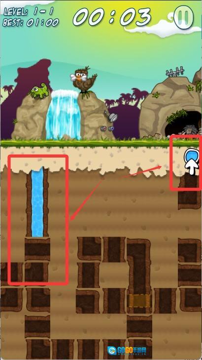 3、游戏开始后,需移动下方的通道,让水流抵达目的地。