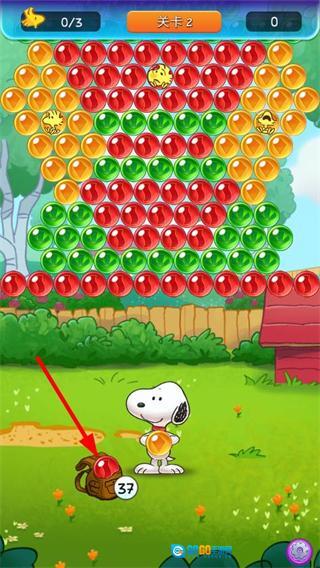 2、点击史努比下方的泡泡袋,就能切换待发射的泡泡颜色。