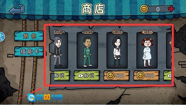 2、点击商店,能够购买各式各样的角色,每一个角色都具备独特的技能。