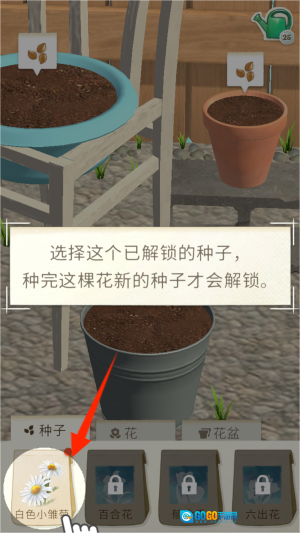 1、首先点击下方的种子,在花盆里进行播种。