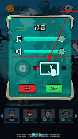 第一次进入游戏时,你可以在设置界面选择适合自己的操作模式,还能调节背景音乐与音效的音量。