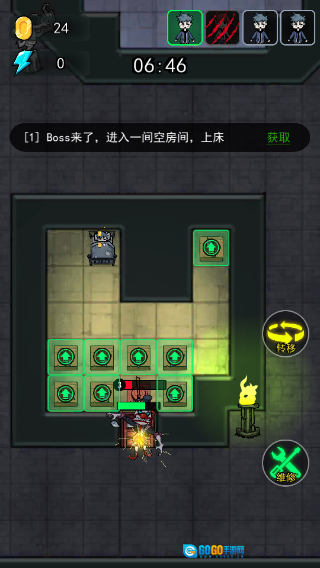 刚开始玩游戏的时候,不建议马上就花金币,应该先把自己的床铺升级了,之后再去升级房门。要是想提升前期的防御能力,可以用8金币买一个扫把炮台。一级的屠夫没什么太大的威胁,不用在它身上投入太多资源,接着按部就班地发展就好。