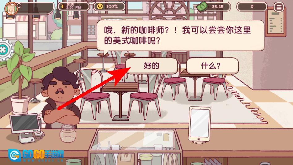 1、当顾客提出点单需求(例如点一杯美式咖啡)时,点击“好的”按钮,以此确认接收到该订单并随即启动制作流程。