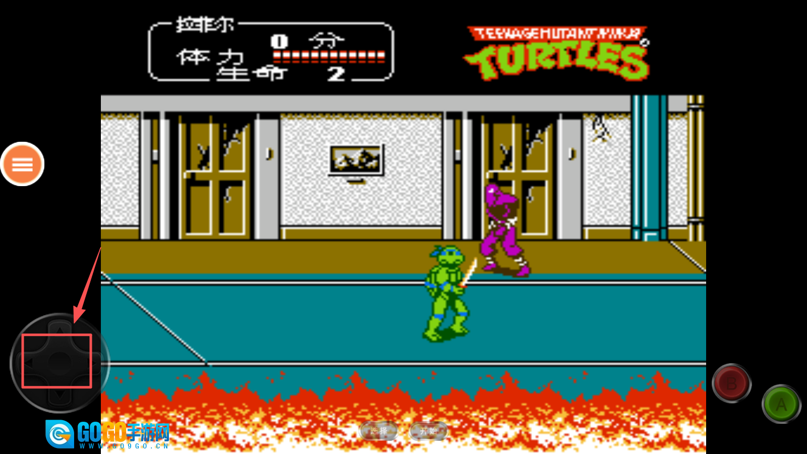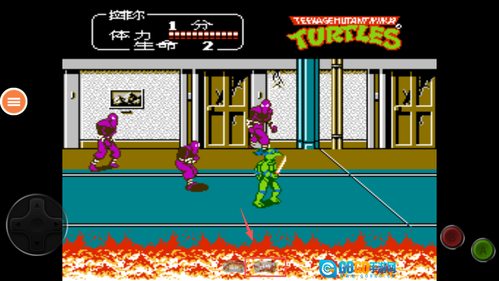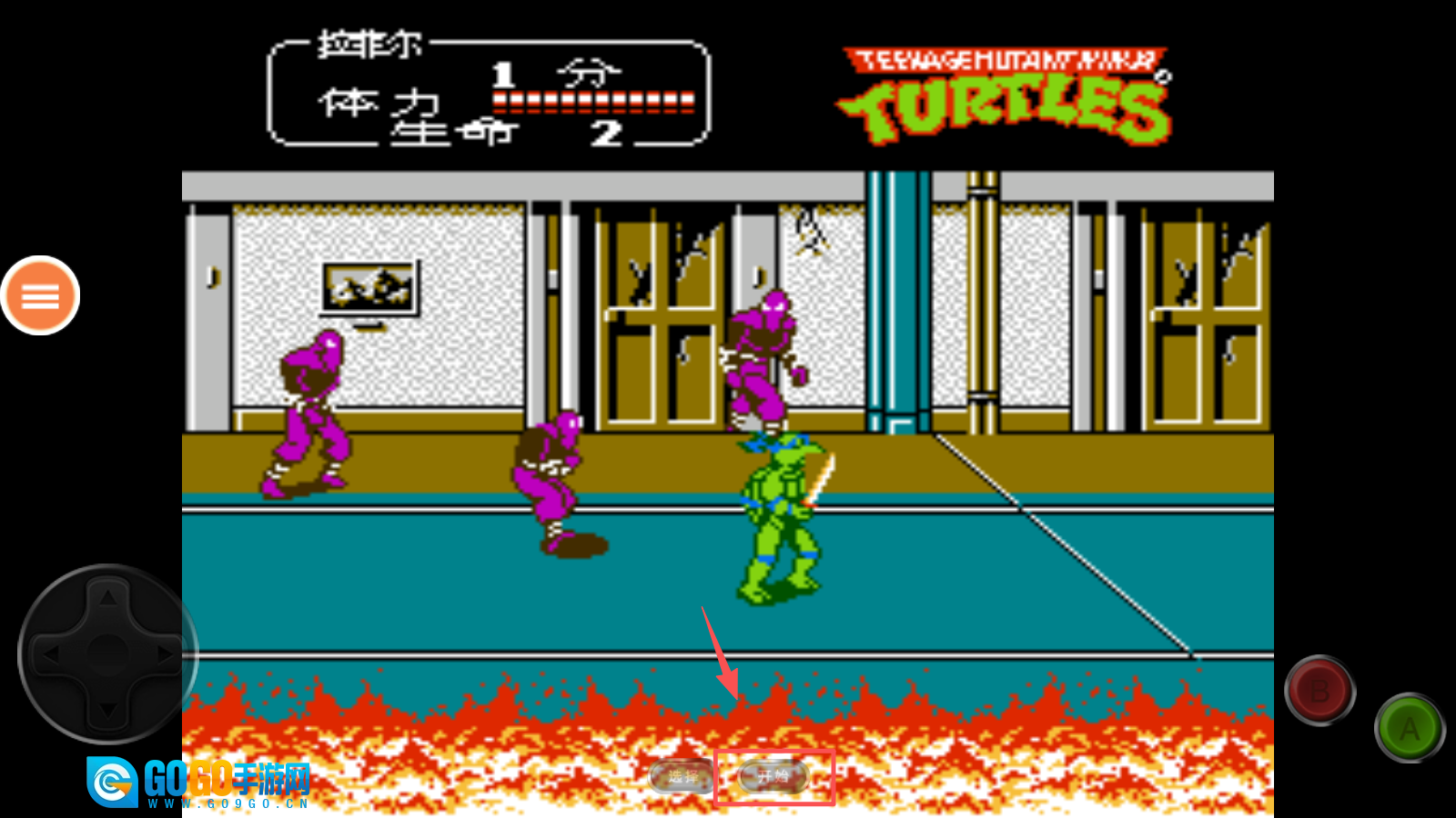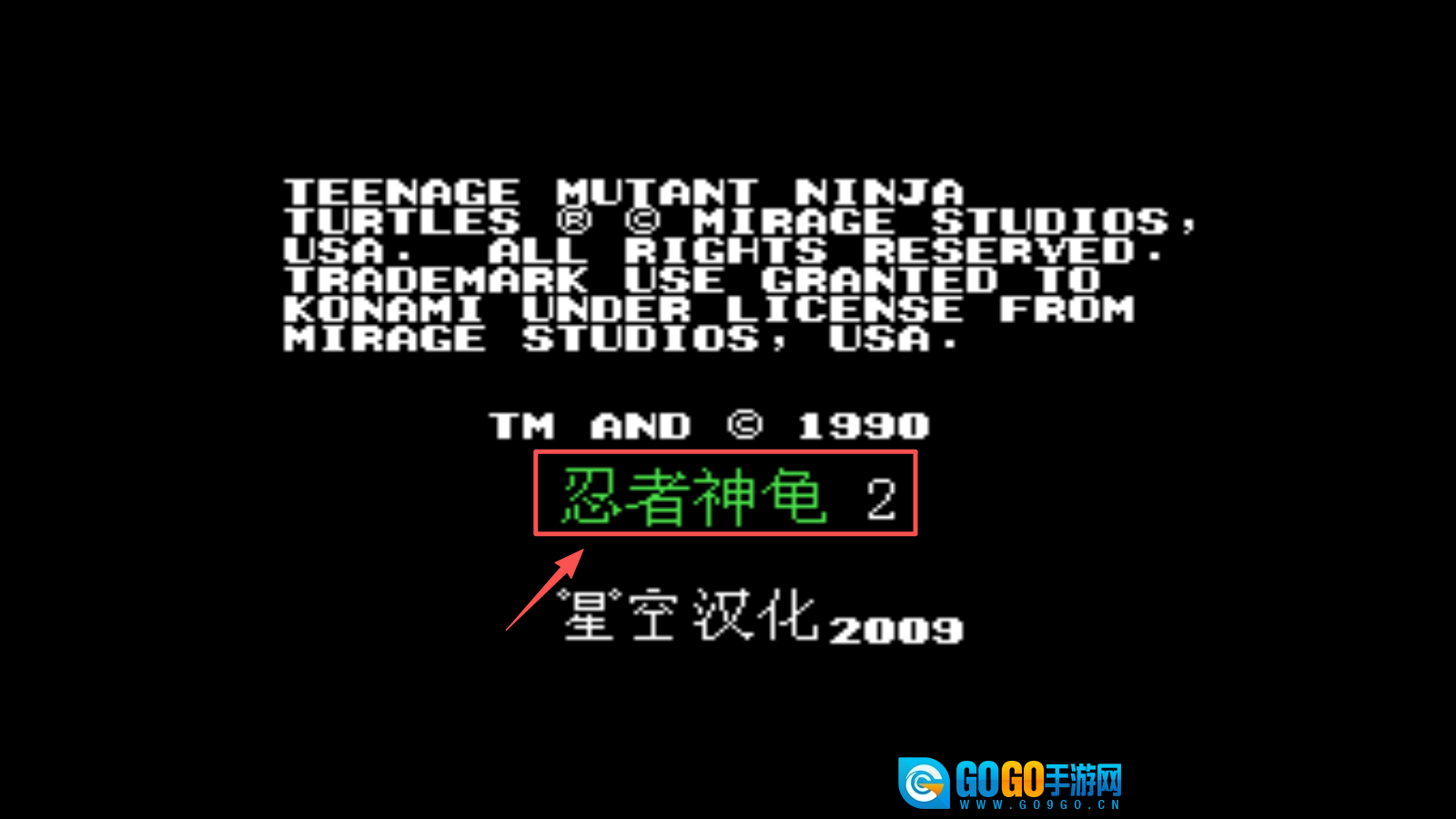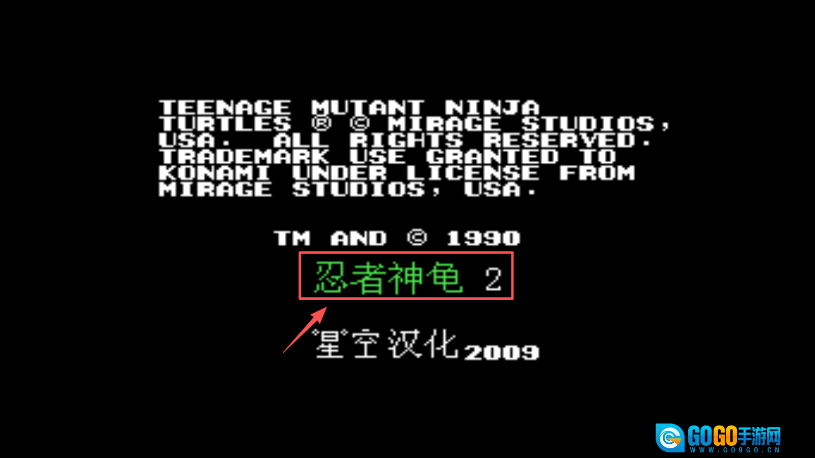 首先,先查看游戏的标题画面,找到并点击“忍者神龟 2”这个选项来启动游戏。