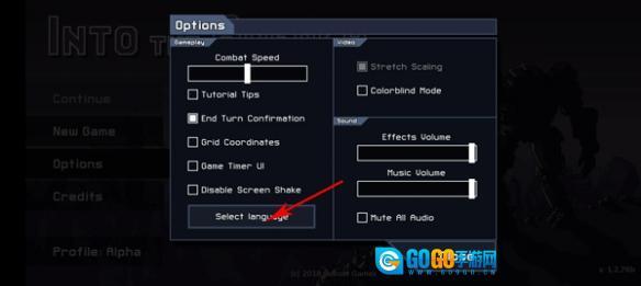 3、进入“options”页面后,点击“select language”选项