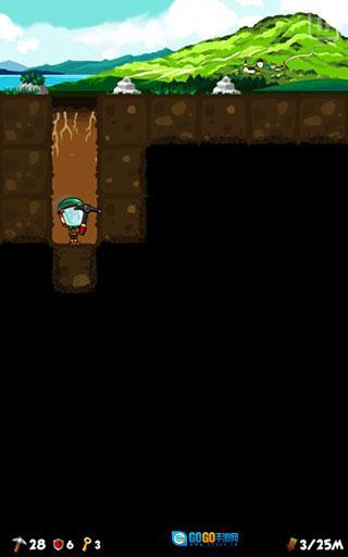 进入《口袋矿工3》游戏后,我们会从地面开始往下挖掘,只需直接点击下方的土块就能向下挖洞。