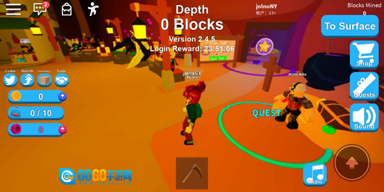 首先我们得前往矿场,接着点击屏幕正下方的木镐把它装备好,再点击想要挖掘的矿石,这时矿石周围会出现绿色的框,按住它就能启动挖掘啦!选定目标后,我们就能看到当前矿石的价值,刚开始的时候,我们只能挖掘价值1金币的矿石,而且一次最多只能装10个,总共价值10金币。