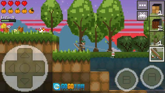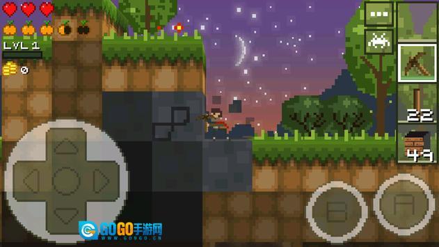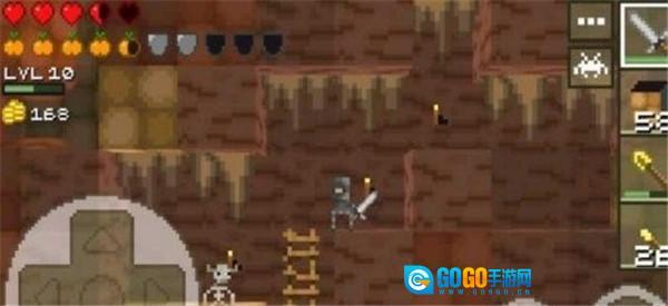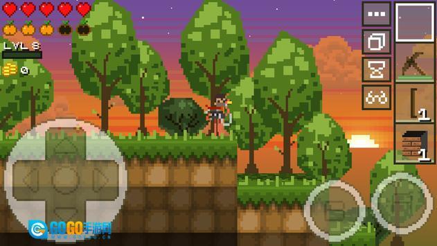 屏幕左下角设有控制移动的虚拟摇杆,通过它可操控角色移动并向前探险;右下角的A键为跳跃功能,连续按下两次即可实现两段跳,B键则是攻击键。在探险途中,角色需要借助跳跃、潜水和挖掘等动作来保护自身安全。