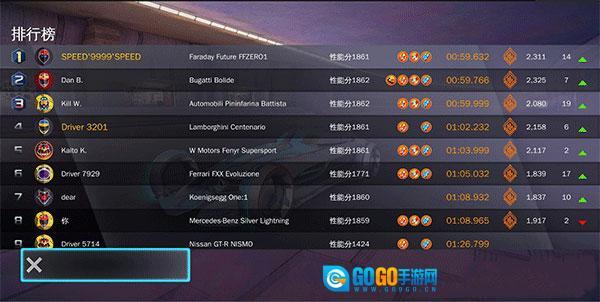 晋级冠军联赛后,尽量选用车辆性能分高的赛车参赛,同时也要尽可能提升车辆的加速性能。