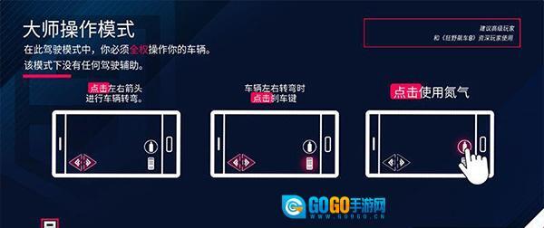 在智能操作模式下,玩家无需在意精细的转向操作,只需按照提示大幅滑动屏幕来选择路线就行,而想要驾驭大师操作模式,就得先熟练掌握过弯技巧。