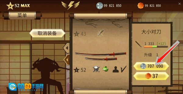 然后你会看到大小对刀的装备,选择升级下面那个选项。