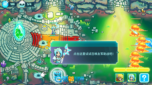 击败敌人能够获得召唤币,借助召唤币可以提升水晶等级、召唤英雄以及获得友军的援助。