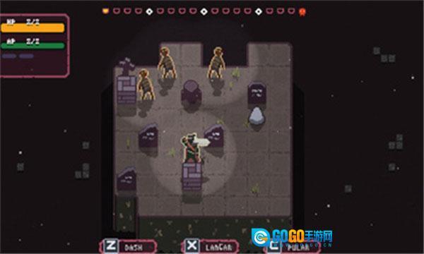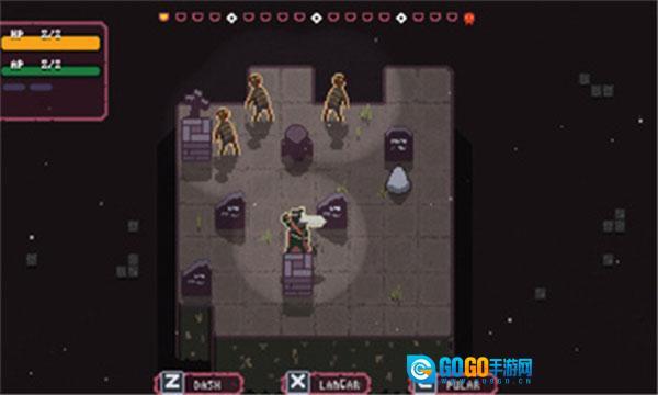 在方格之间跳跃移动时,若持有剑,就能让周围的敌人陷入眩晕状态;要是没带剑,那就只能把他们推开。