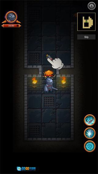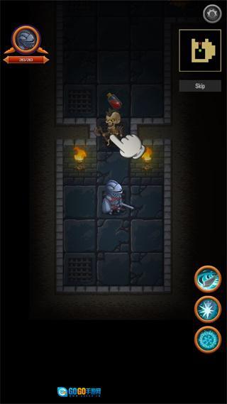 击败骷髅以后可以获得药水和金币,点击拾取;
