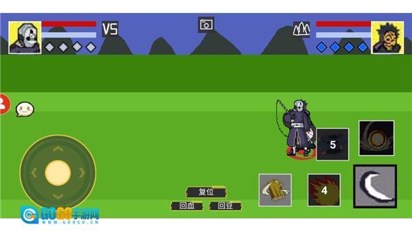 另外,这款游戏的操作方式十分简易,和传统格斗类游戏的操作逻辑相近。在像素火影最新版本中,左侧界面用于操控角色的上下左右移动,右侧则是技能释放区域。不过它也有独特之处——界面中央新增了三个实用功能按钮,分别是复位(一键将所有设置恢复至初始默认状态)、回血(让所有角色的生命值回满)以及回豆(补全角色释放大招所需的能量豆)。值得一提的是,每个角色都拥有专属的技能体系,玩家可以挑选自己喜爱的角色,通过施展酷炫的连招击败对手,游戏的可玩性相当高,感兴趣的用户不妨来试试。