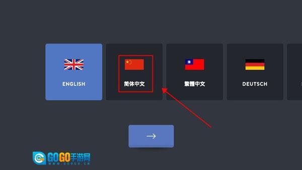 首次进入游戏时,选择“简体中文”选项就能完成中文汉化设置,具体操作可参考下图。