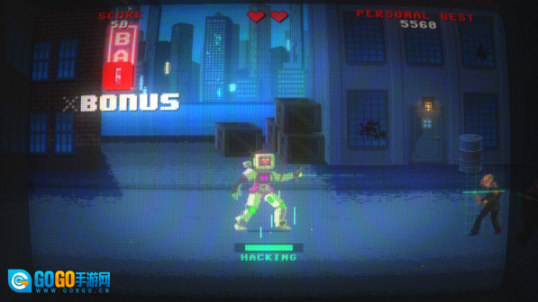 进入机械工场后,初期会遇到大量标有"MRX"字样的机器人,记得别和它们站在同一条直线上,不然会遭到攻击——不过这点威胁不算什么。左上角的三个箱子里藏着一块金块和一个大加血道具,拿完继续前进,沿途会碰到不少矮机器人和穿西服的枪手,一路清理过去就行,难度不高就是有点烦。走到尽头会遇到一个"飞行员"敌人,用前A技能就能解决他,然后吃掉箱子里的大加血,去挑战小BOSS。小BOSS的难度也不大,关键是要不断向下翻滚躲避攻击,等它的爪子挥下来时就跳起来用B技能,这招能造成大量伤害,等它落地后再补个A技能,很快就能搞定了。