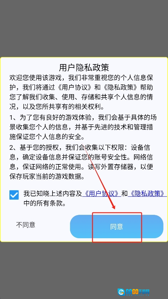 1、阅读并同意隐私政策。